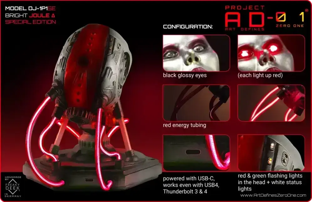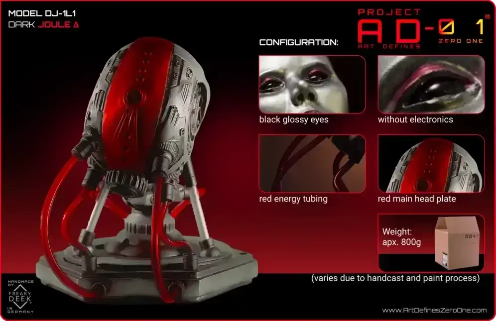 Please note that the DJ-1L1 and DJ-1P1 Codename JOULE Δ of the Project AD-01 line are handmade decorative sculptures and no actual robots.